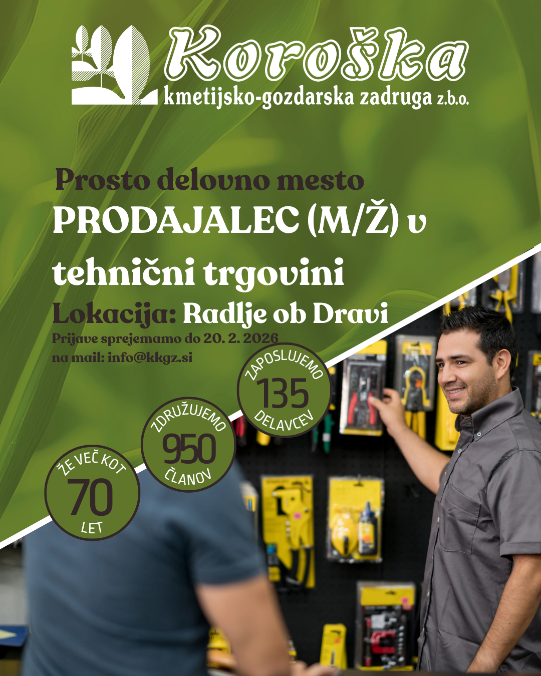 V tehničnih trgovinah, Kmetijskem centru Stari trg, Trgovini Šmartno, Trgovini Mislinja, Trgovini Dravograd, Trgovini Ravne, Trgovini Kotlje, Prodajnem skladišču Prevalje, Trgovini Črna, Trgovini Vuzenica, Trgovini Muta, Trgovini Radlje in Trgovini Ožbalt, vršimo oskrbo z repromaterialom, kot so mineralna gnojila, krmila, krmna žita, pesni rezanci, sredstva za varstvo rastlin, semena in drugo tehnično blago široke potrošnje, kmetijsko mehanizacijo in njihove rezervne dele, asortima za vrtičkarje, v trgovini Cvetličarna Radlje pa vršimo cvetličarsko dejavnost.